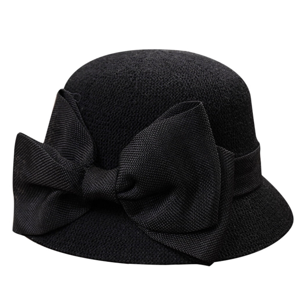 Cloche Hats for Women Elegant Bucket Women's Cloche Ladies Hat Cap Wool Winter Vintage Flower Caps Felt Hats for Women Black