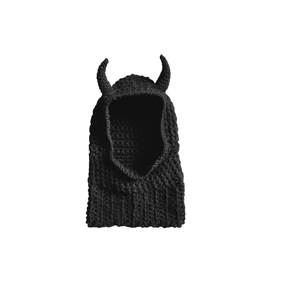 Warm Knitted Hats Funny Knitted Horn Hats Fashionable Warm Wool Hats for Women Ski Scarves Black