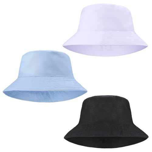 Zuimei 3 Pieces Bucket Hat Summer Fisherman Hats Foldable Cotton Bucket Hats for Women Men, Black, Blue, White