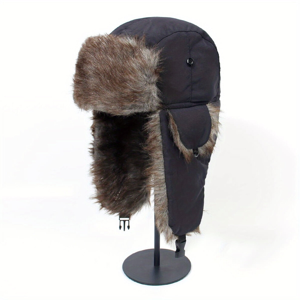 BLSCODE Unisex Winter Hat Russian Earflap Hat Keep Warm Ski Hat Men Women Faux Fur Man Unisex Bomber Hats For Women Black