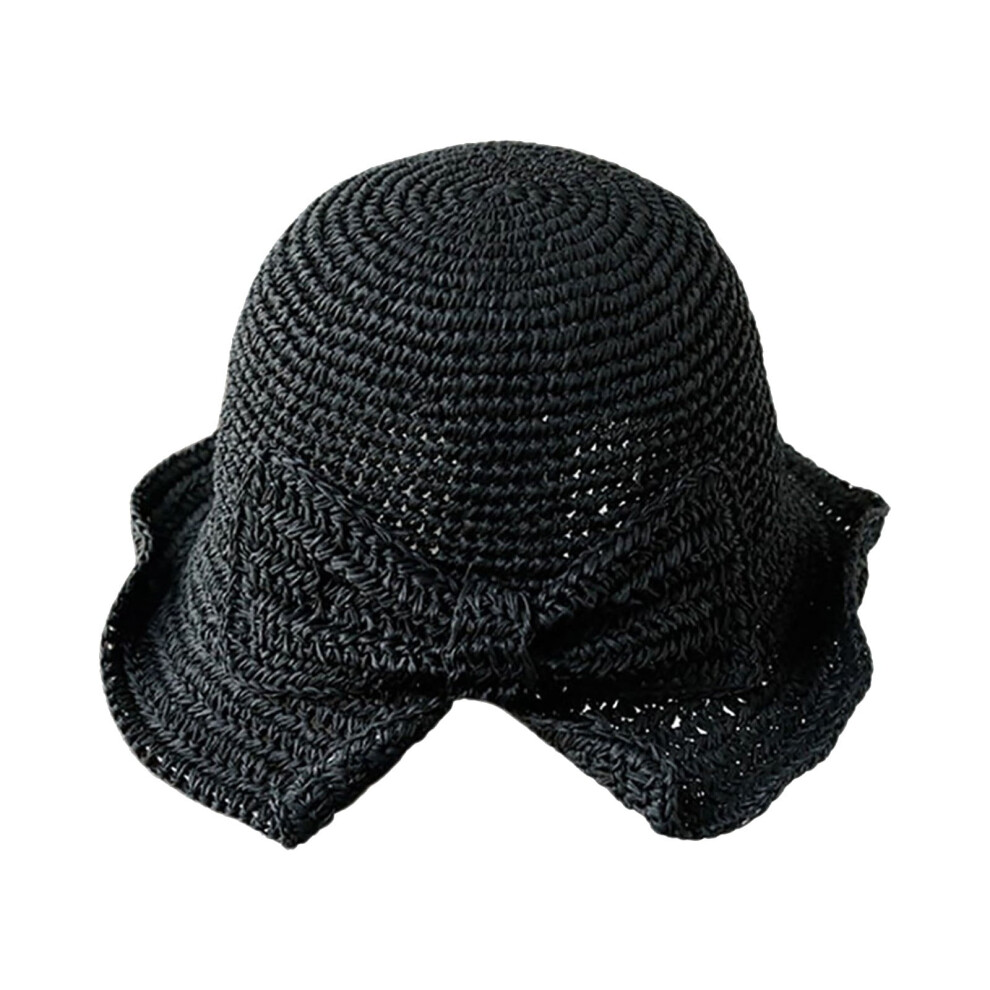 Sun Hats for Women Foldable Wide Brim Floppy Sun Hat for Women Fashion Woven Bow Sun Hat Summer Beach Hats for Women Black
