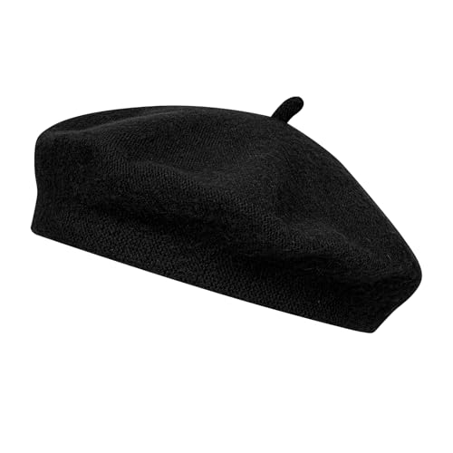 Alaoo Adult Beret Hat, Soft Women French Style Wool Beret Hat, Classic Solid Color Outdoor Vintage Artist Hats for Women Girls, Black
