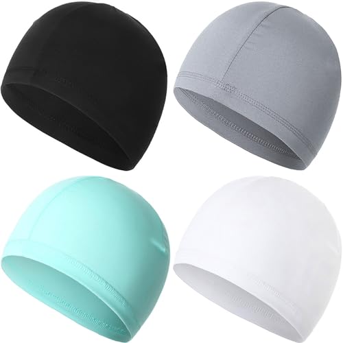 YeeHeen 4 Pieces Skull Caps Running Cycling Beanie Hats Breathable Helmet Liner Sleep Hats for Men Women J Black+Light Grey+Sky Blue+White