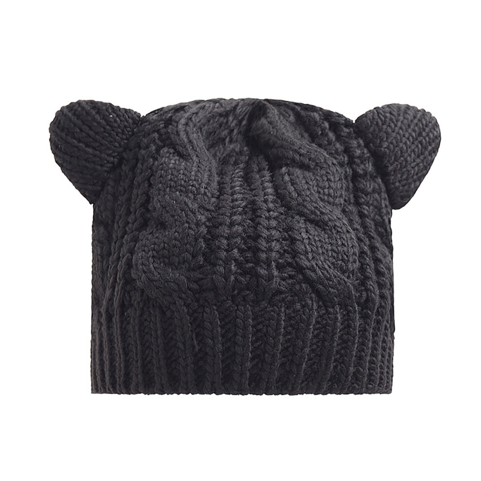 Warm Knitted Hats Knitted Horn Hats for Women Ski Scarves Black