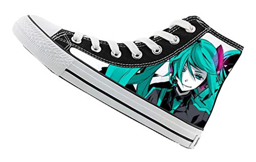WANHONGYUE Hatsune Miku Unisex Anime Cosplay High-Top Sneakers Lace-up Canvas Shoes Fashion Trainers 3 UK Black / 4