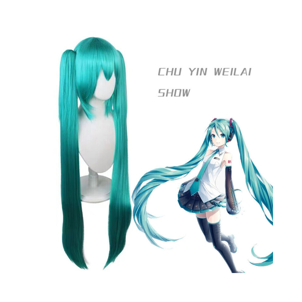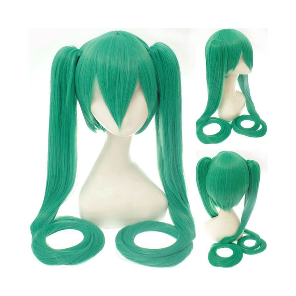 Vocaloid Hatsune Miku Cosplay Wig Green Wigs with 2 Ponytail Long Straight Wigs Halloween Carnival Party Prop