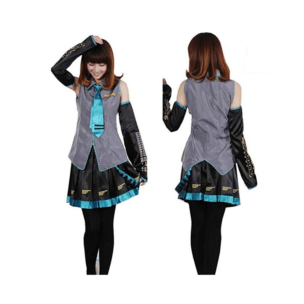 (Full Set(Wihtout Shoes), XL) Hatsune Anime Miku Vocaloid Cosplay Costume Wig Tops Dress Outfit Complete Tie