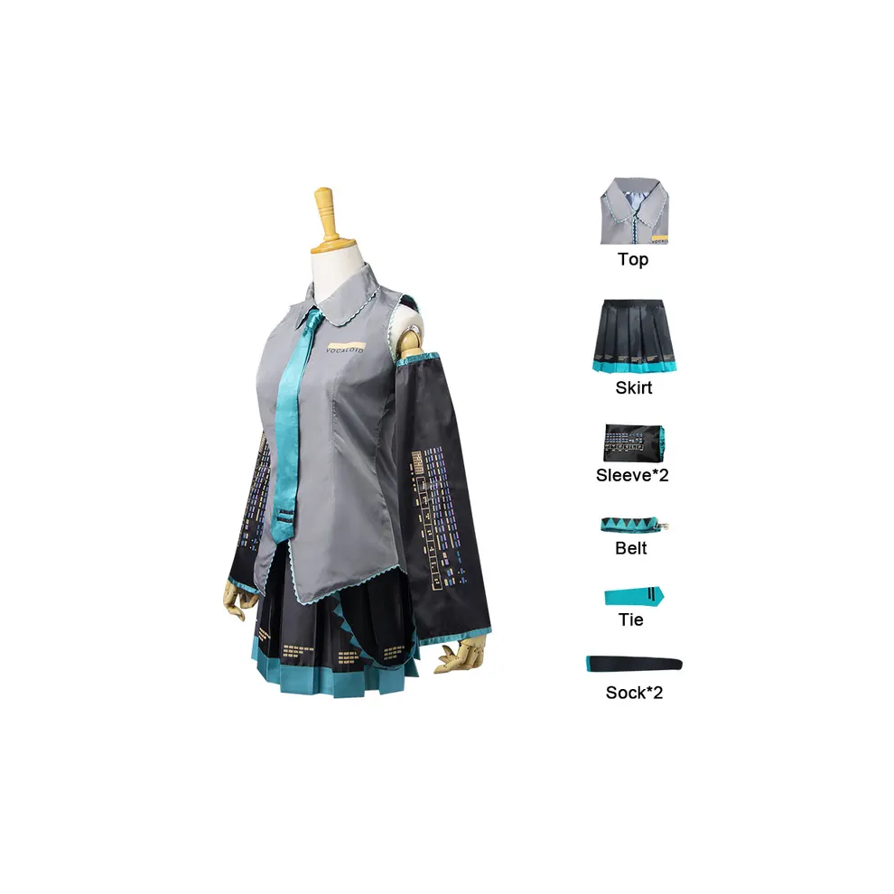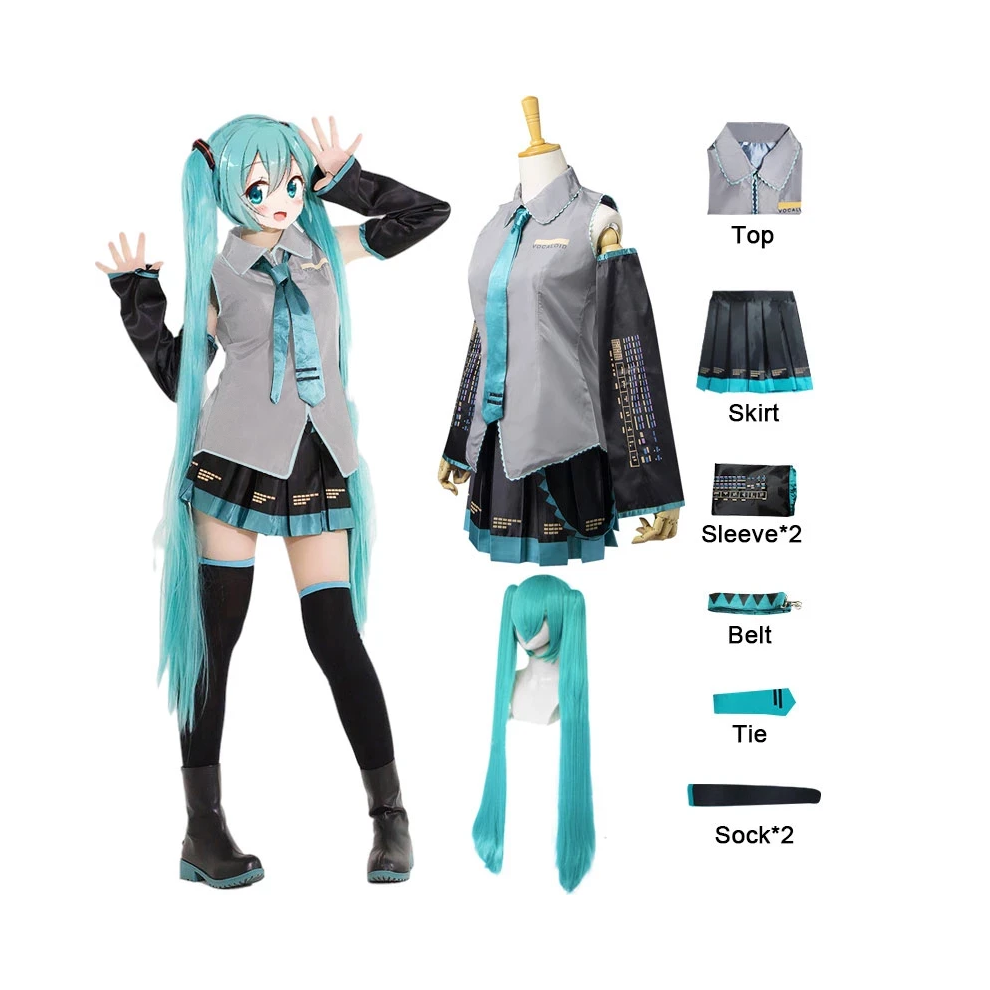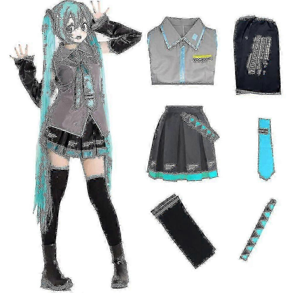 (L) 6pcs/set Hatsune Miku Cosplay Costume Women Performance Show Fancy Dress Comic Suits Uniform Halloween Party