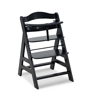 hauck Alpha+, Black - Wooden High Chair 6 Months to Adult Sustainable FSC Certified Beechwood Toddler Feeding and Entertainment Chair, Inclusive 5-Point Harness Bumper Bar Crotch Strap