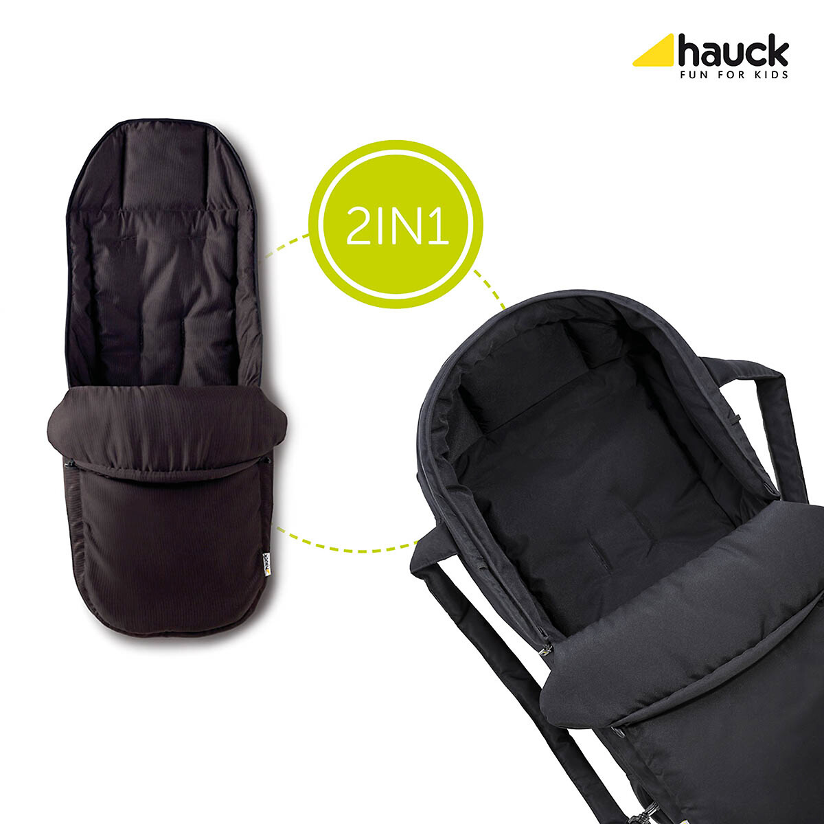 hauck 2 in 1 Carrycot & Footmuff, Black - Universal Fit for Most Pushchairs & Strollers from Birth up to 9 Months with Zipper & Detachable Carry Handles