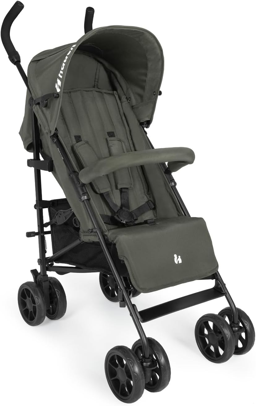 Hauck Shop N Care, Olive - Lightweight Pushchair (only 8.5 kg) with Snack Tray, Cup Holder & Raincover, Compact & One Hand Folding, Fully Reclining from Birth up to 22 kg