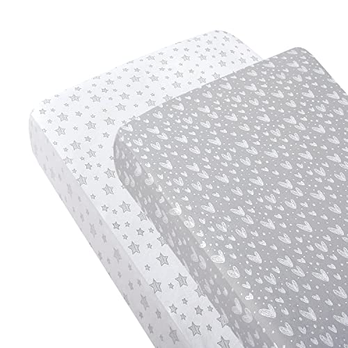 SPRINGSPIRIT Cot Sheets 120x60cm Fitted 2 Pack - 100% Cotton Travel Cot Sheets - Ultra Soft & Breathable - Fits Hauck Sleep N Play, Dream N Play - White & Grey Print