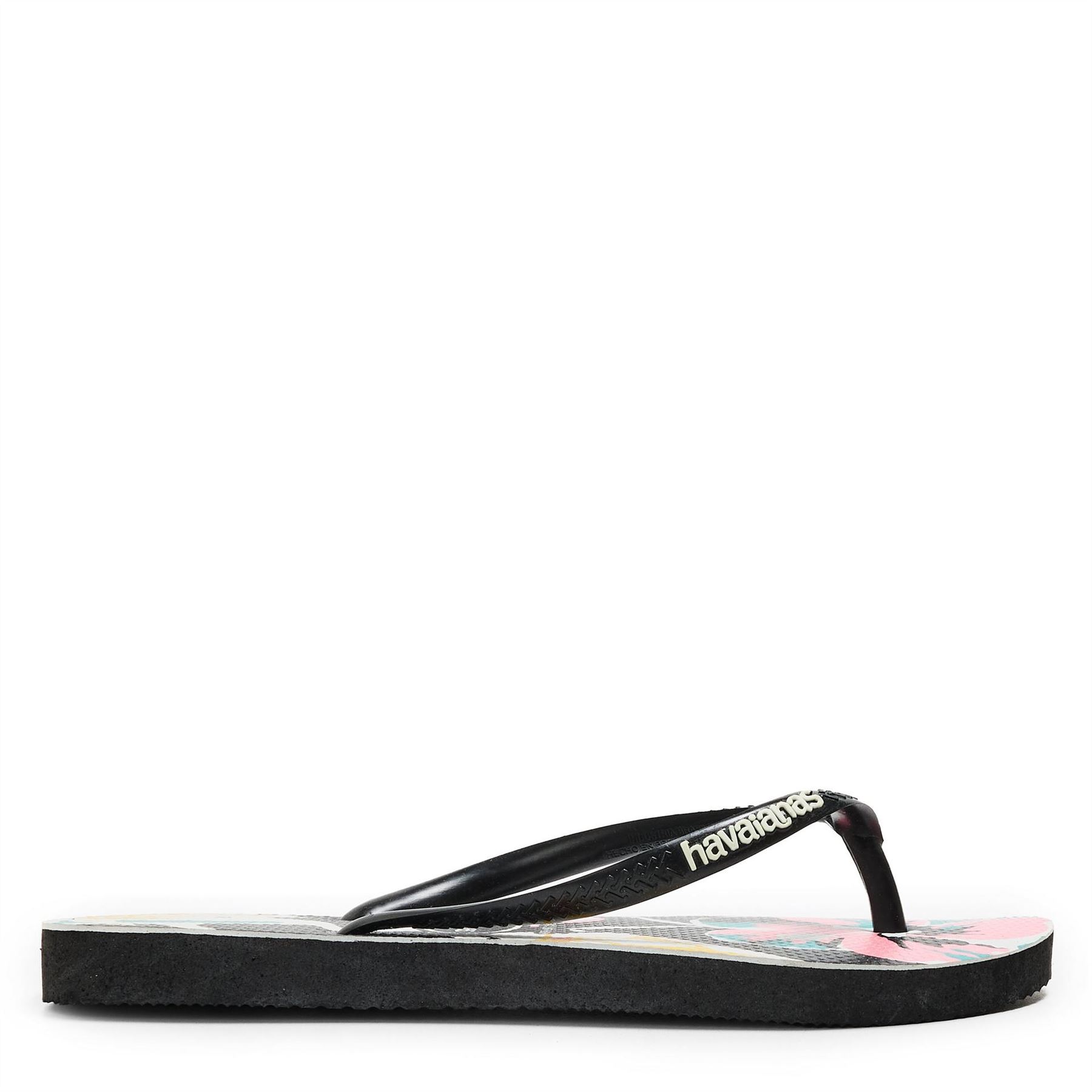 Havaianas Womens Slim Tropical Floral Flip Flops in Dark Black - Size UK 5