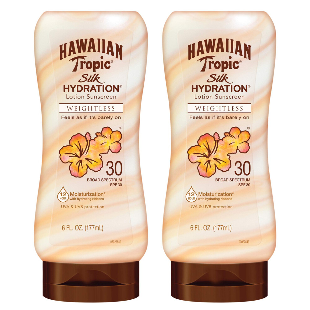 Hawaiian Tropic Weightless Hydration Lotion Sunscreen SPF 30 6oz Twin Pack | Oil Free Sunscreen Hawaiian Tropic Sunscreen SPF 30 Oxybenzo