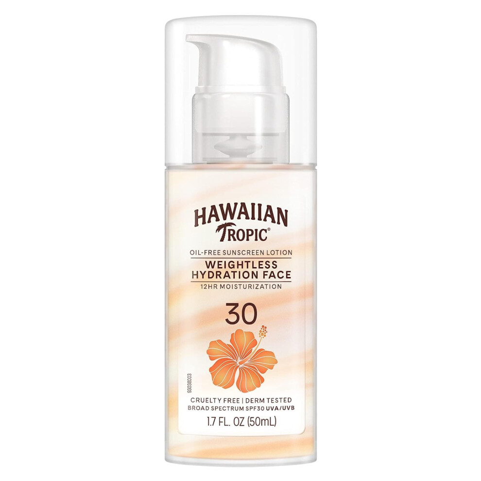 Hawaiian Tropic Silk Hydration Weightless Oil-Free Face Sunscreen SPF30 Lotion 50ml | Broad Spectrum UVA/UVB Protection | Water-Resistant