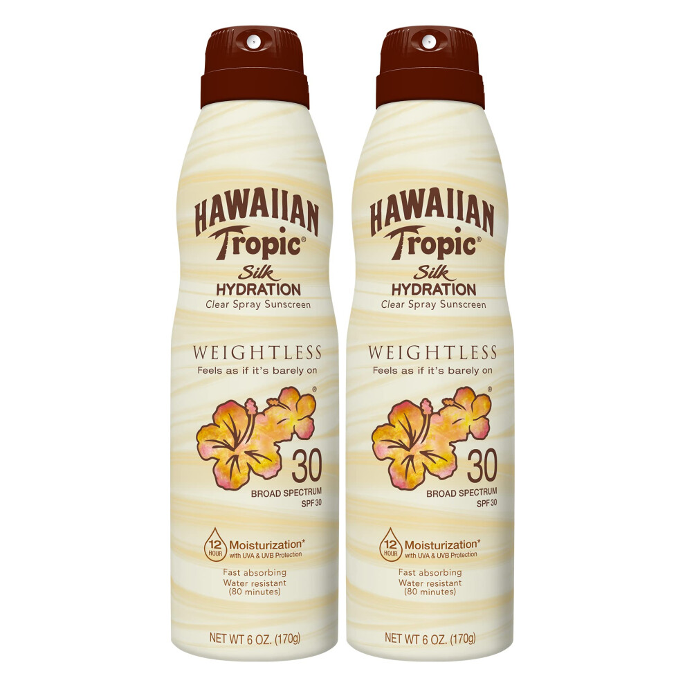 Hawaiian Tropic Weightless Hydration Clear Spray Sunscreen SPF 30 6oz Twin Pack | Hawaiian Tropic Sunscreen SPF 30 Sunblock Oxybenzone Free Sunscre