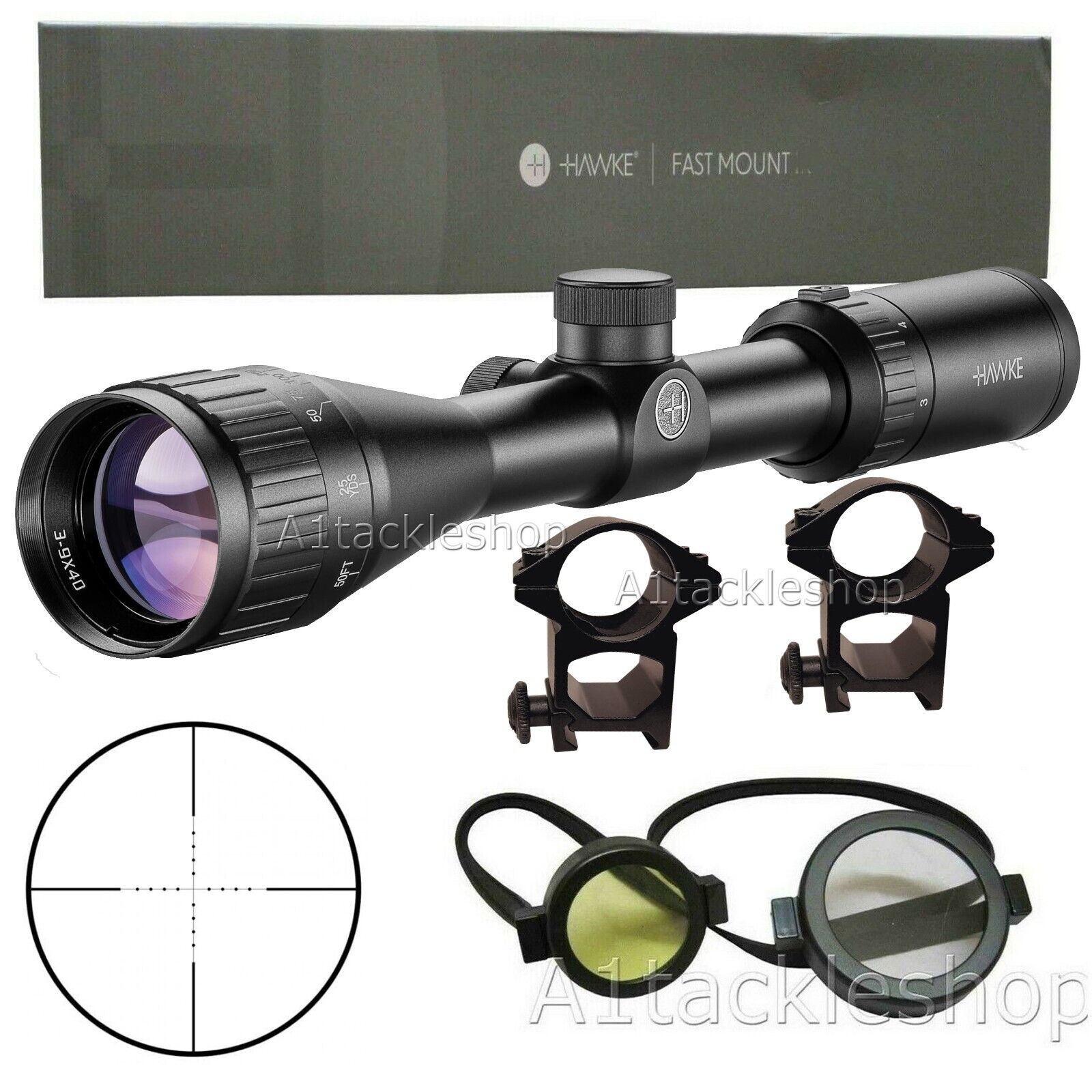 Hawke Fastmount 3-9x40 AO Rifle Scope Sight inc Picatinny mounts 11523