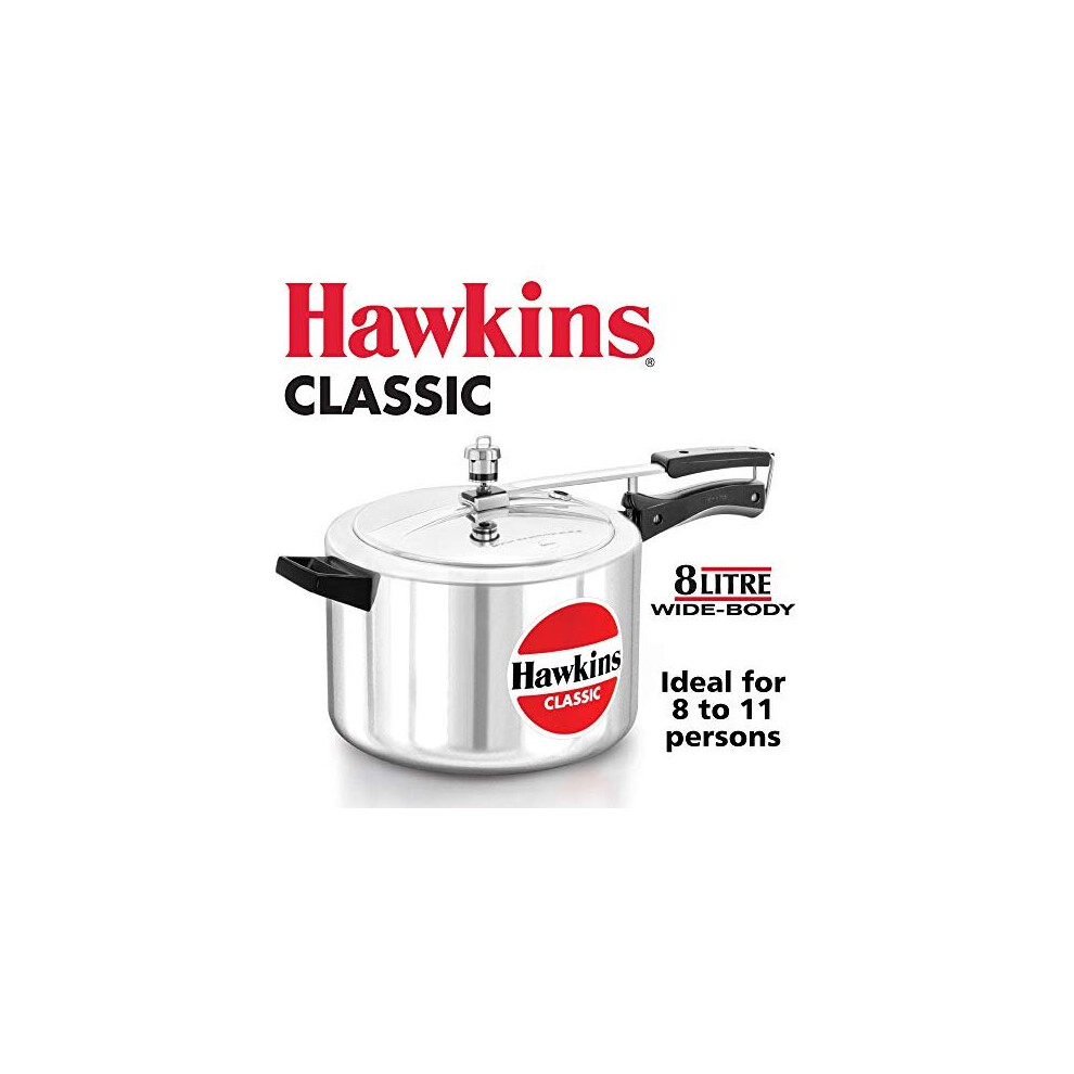 Hawkins Classic CL8W 8 L Aluminum Wide Body Pressure Cooker Medium Silver 8-Liter