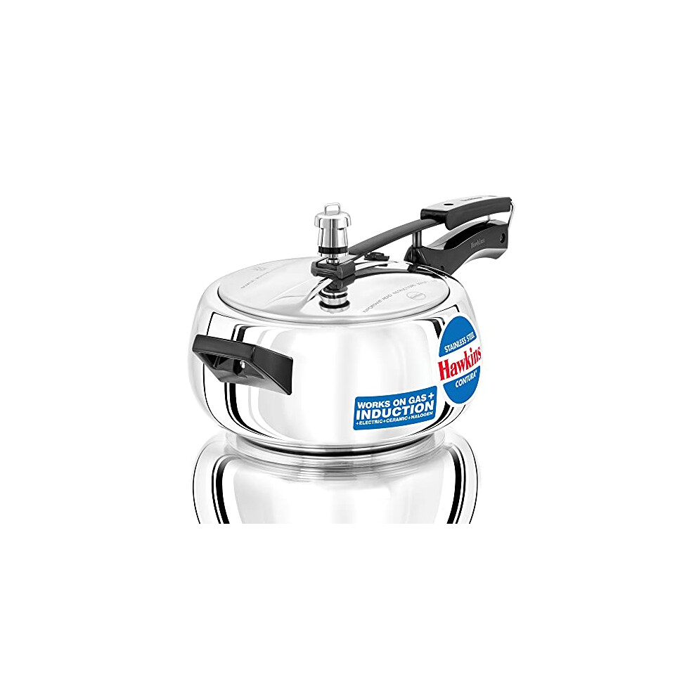 Hawkins 2 Litre Contura Pressure Cooker Stainless Steel Inner Lid Cooker Handi Cooker Induction Cooker Small Cooker Silver (SSC20)