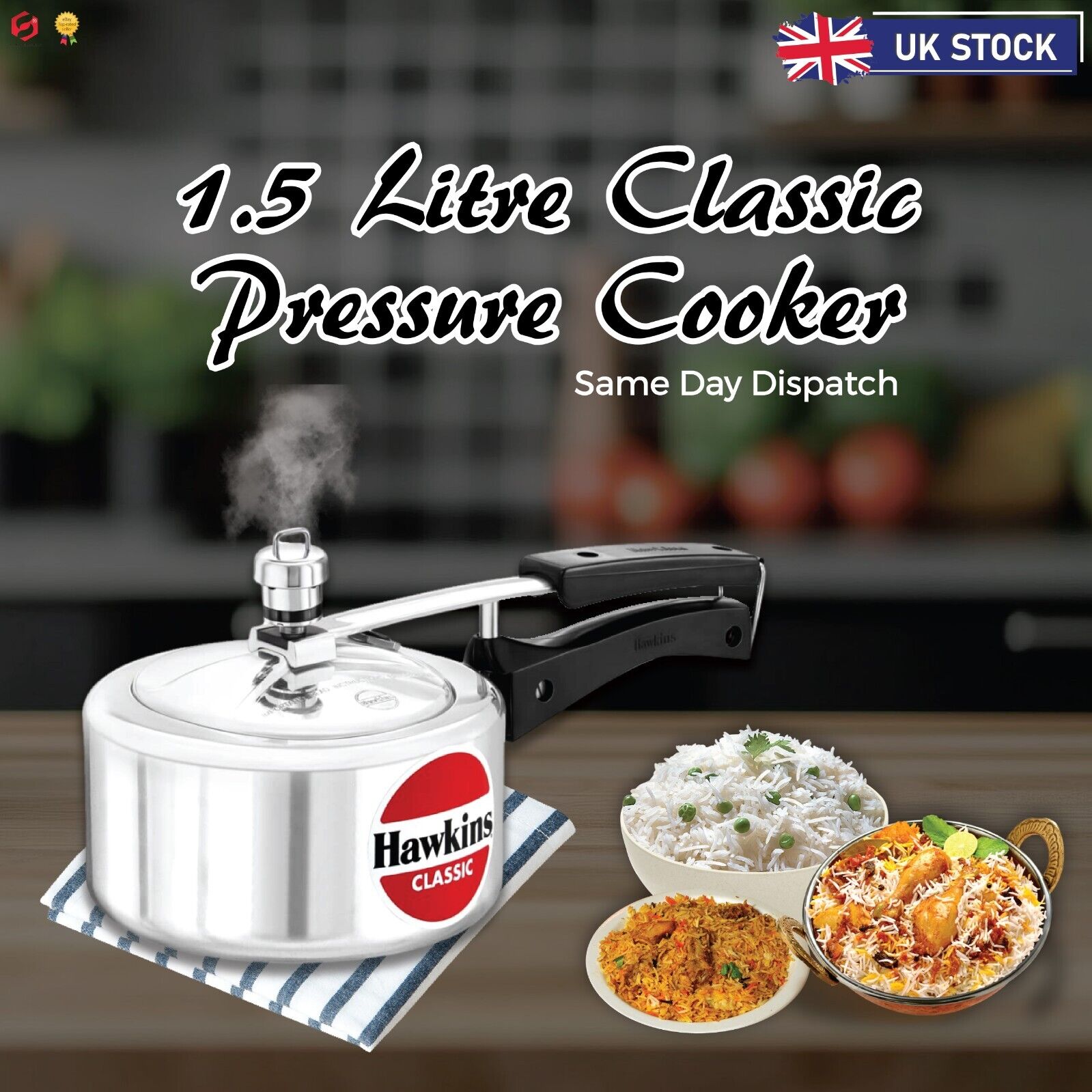Hawkins Classic Aluminium Pressure Cooker Stovetop Pressure Cooker 1.5 ltr