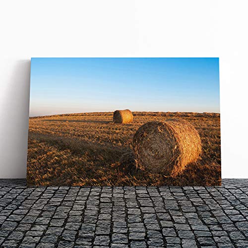 Hay Bales Canvas Print | Gallery Wrapped 30mm Frame Wall Art | 24x16 inches | Ready to Hang | Modern Picture | Living Room Bedroom Lounge Office
