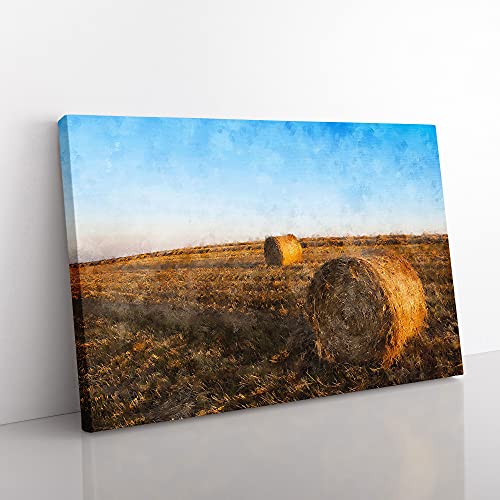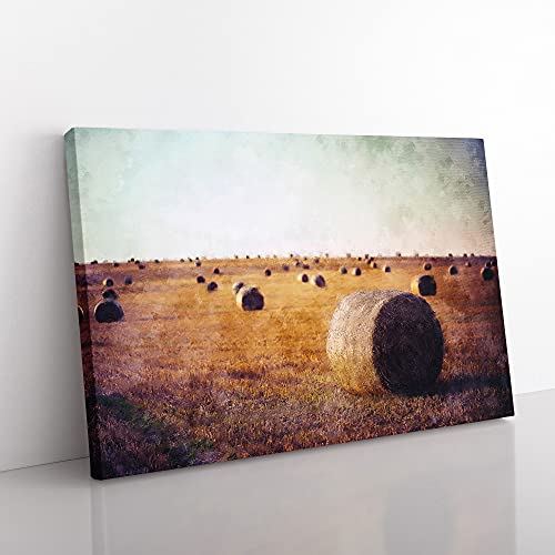 Hay Bales Canvas Print for Living Room Bedroom Home Office Décor, Wall Art Picture Ready to Hang, 30 x 20 Inch (76 x 50 cm)