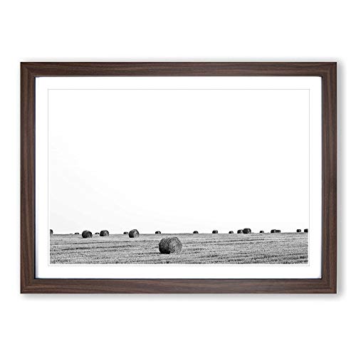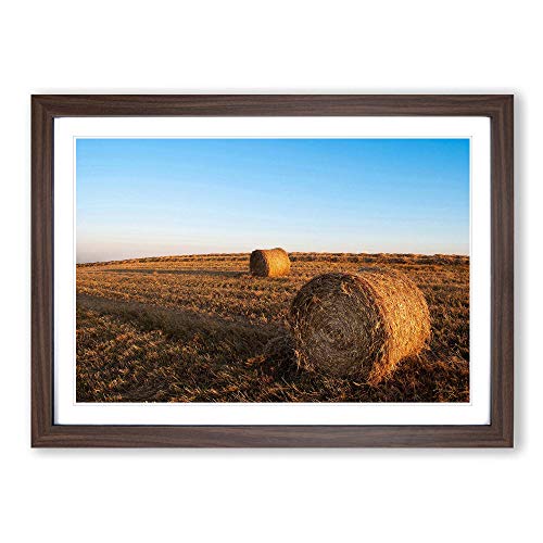 Big Box Art Landscape Hay Bales on a Field (1) Framed Wall Art Picture Print Ready to Hang, Walnut A2 (62 x 45 cm)
