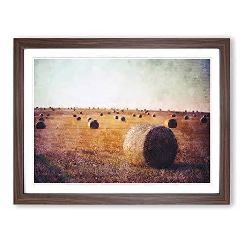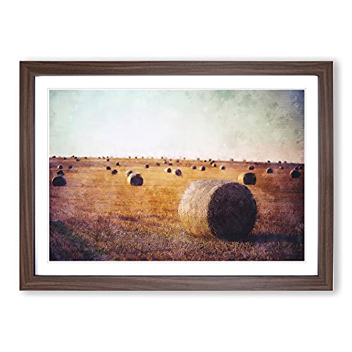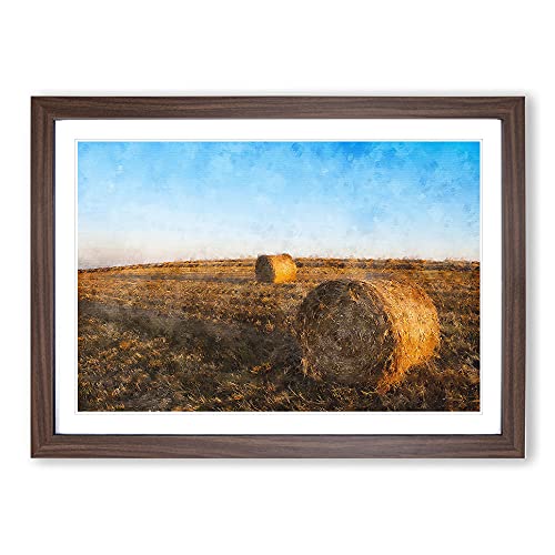 Big Box Art Hay Bales On A Field Painting Framed Wall Art Picture Print Ready to Hang, Walnut A2 (62 x 45 cm)