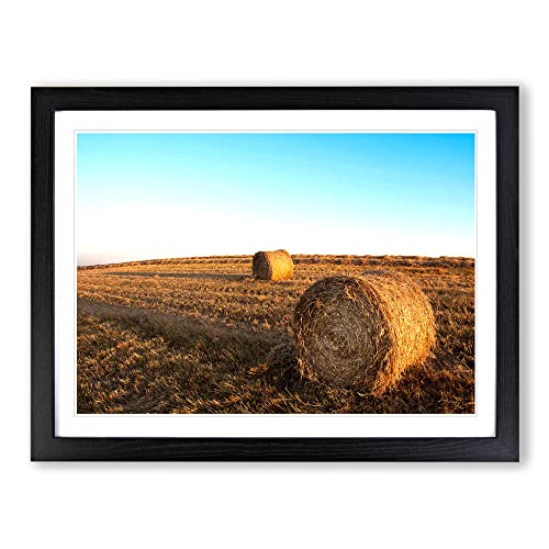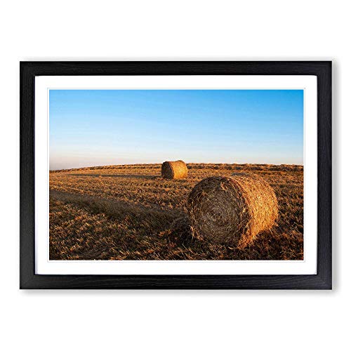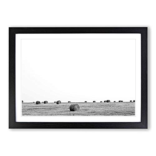 Landscape Hay Bales on a Field No.3 Modern Framed Wall Art Print, Ready to Hang Picture for Living Room Bedroom Home Office Décor, Black A4 (34 x 25 cm)