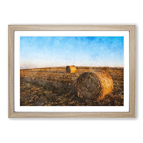 Hay Bales Painting Modern Art Framed Wall Art Print, Ready to Hang Picture for Living Room Bedroom Home Office Décor, Oak A4 (34 x 25 cm)