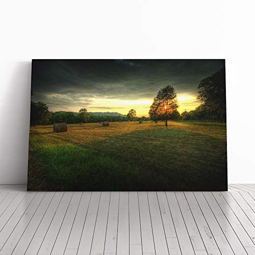 Landscape Hay Bales on a Field (1) Canvas Print | Gallery Wrapped 30mm Frame Wall Art | 20x14 inches | Ready to Hang | Modern Landscape Picture | Living Room Bedroom Lounge Office