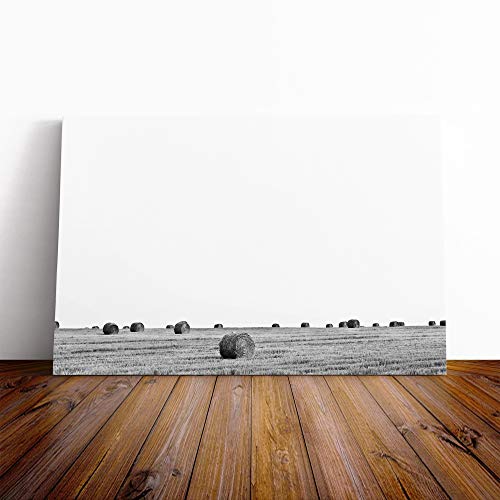 Landscape Hay Bales on a Field No.3 Canvas Print | Gallery Wrapped 30mm Frame Wall Art | 30x20 inches | Ready to Hang | Modern Landscape Picture | Living Room Bedroom Lounge Office