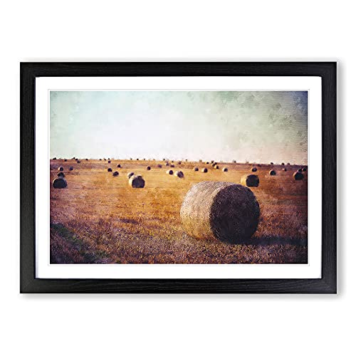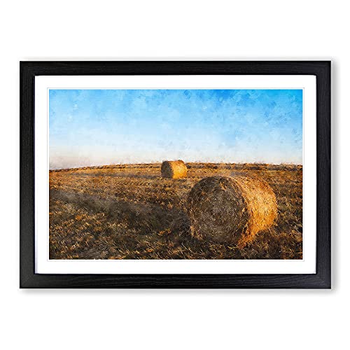 Big Box Art Hay Bales On A Field Painting Framed Wall Art Picture Print Ready to Hang, Black A2 (62 x 45 cm)