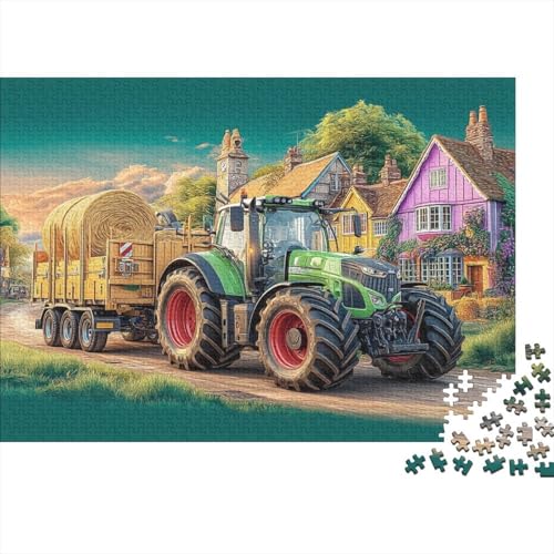 Tractor Hauling Hay Jigsaw Puzzles 1000 Pc for Adults - Fun Rural Village Scene Style Present Great Gift Idea Wall Decoration And Gifts 70x50cm/1000pcs
