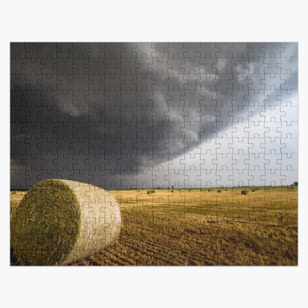 (Spinning Gold - Round Hay Bale and Storm in Kansas=2762) Jigsaw Puzzle Wooden 300-Piece for Adults Kids Seniors- Home Decor Family Activity Game Wall