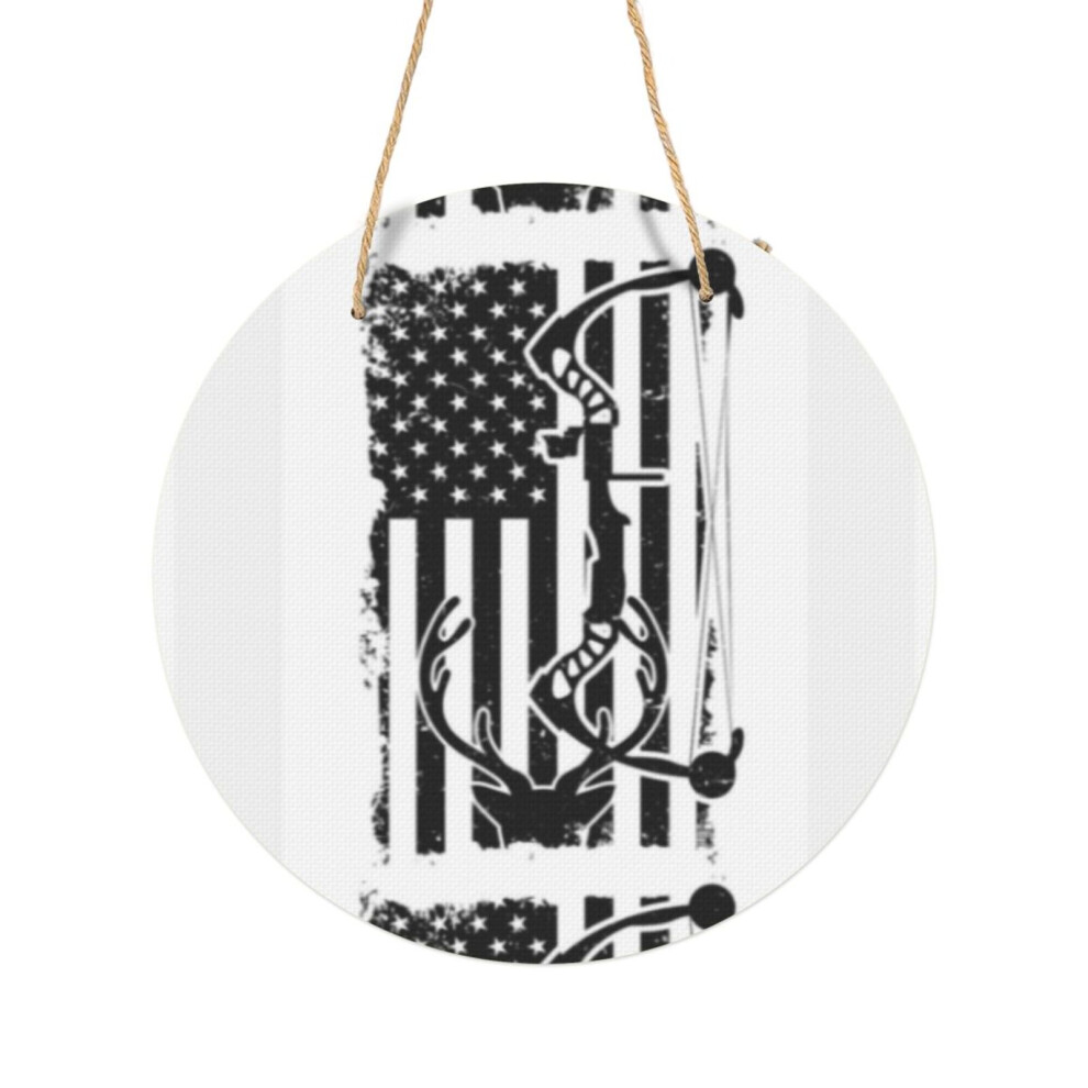 (Deer Hunter's American Flag Archery Hay Bails=9333) Round Metal Sign Aluminum 11.5 Print Sign Wall Art Decor Plaque For Home Bar Cafe Pub Xmas Decora