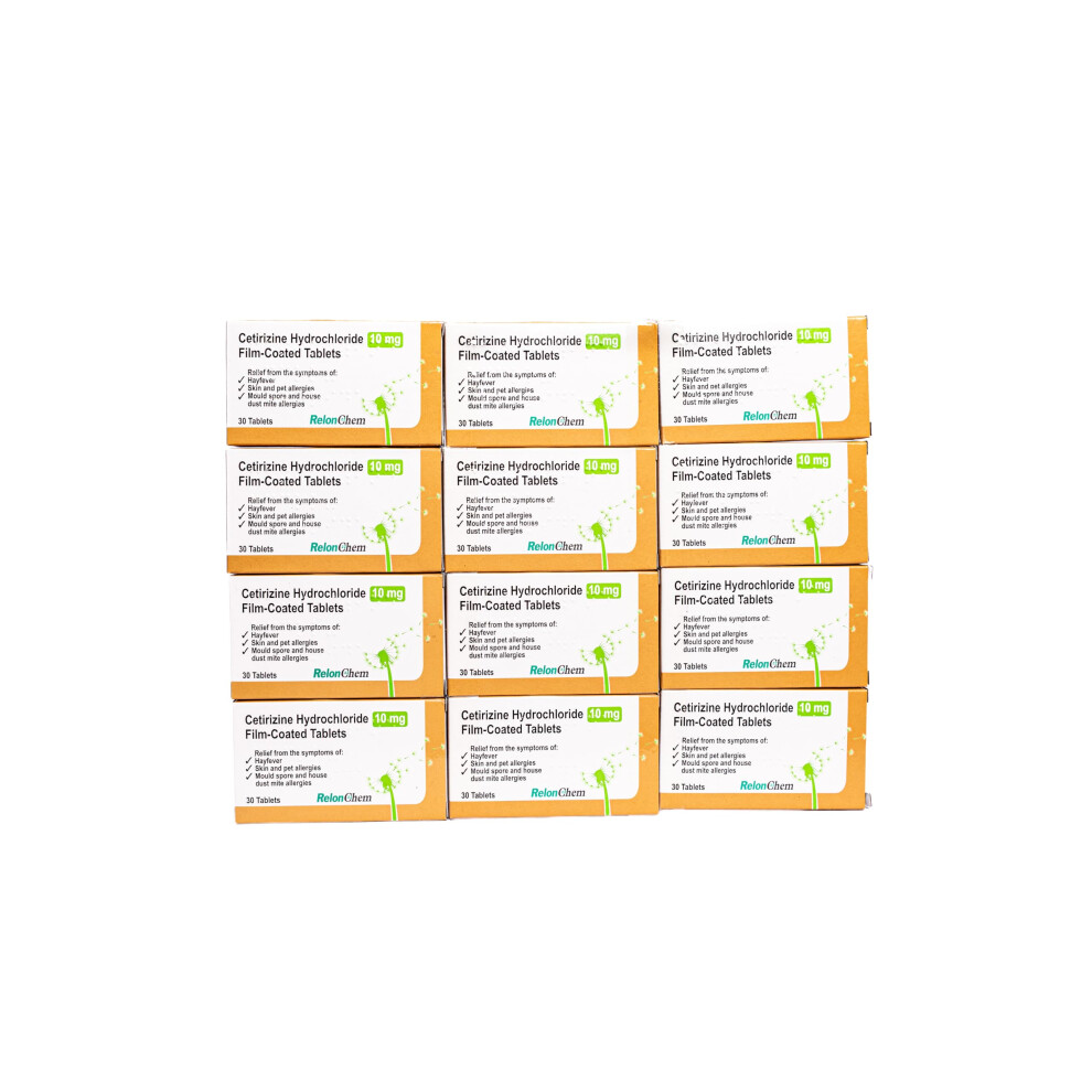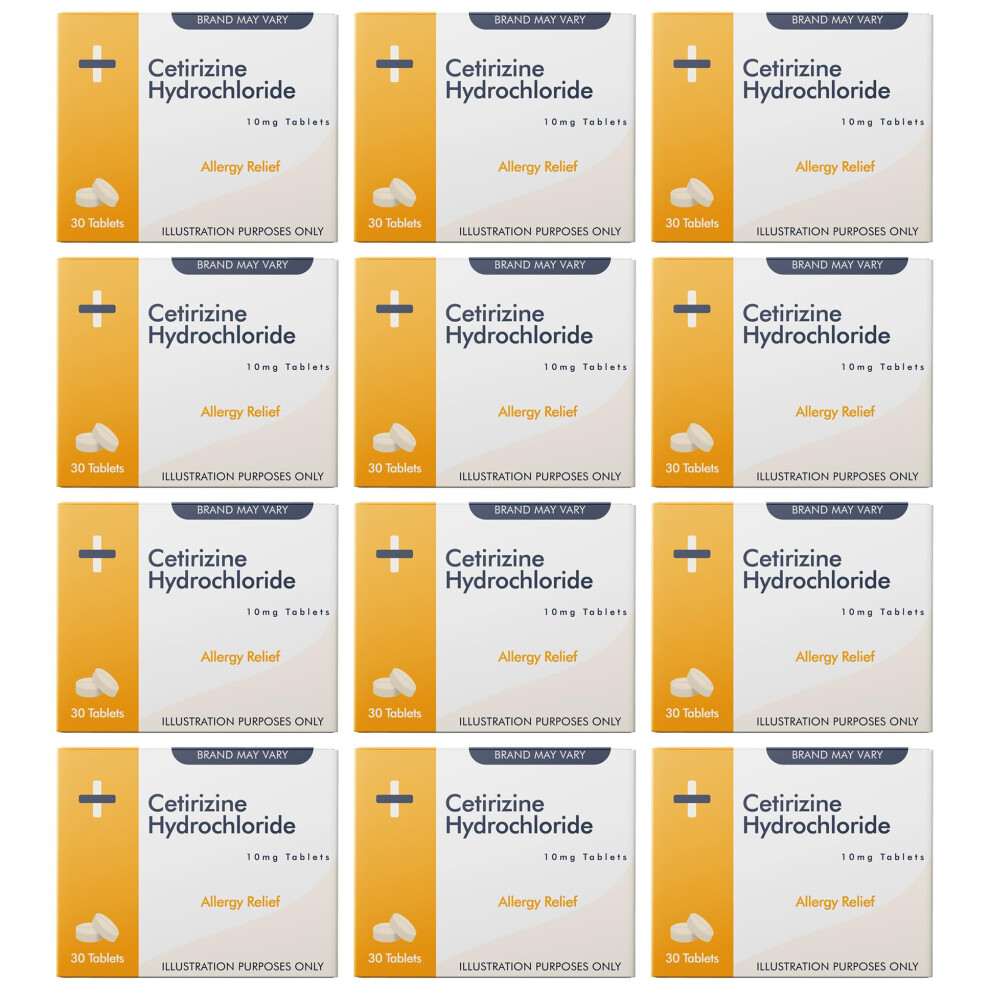 12 Months Supply Cetirizine Hayfever and Allergy Tablets 30 x 12 RelonChem