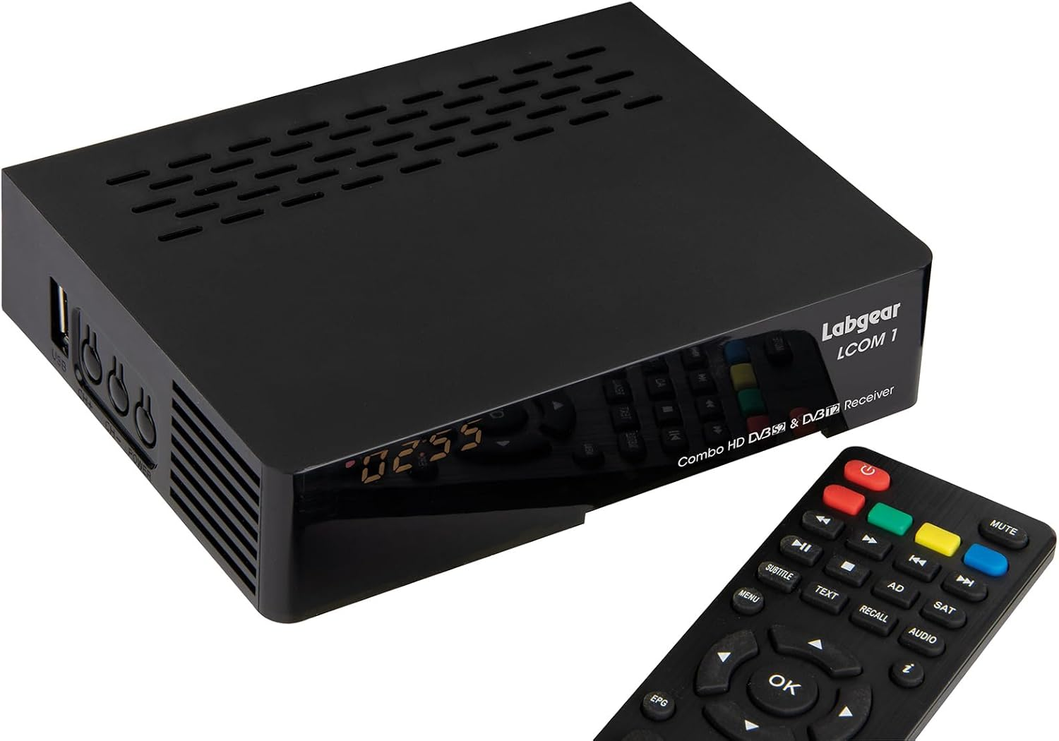 Freeview HD Receiver Combo Full HD Satellite & Terrestrial Receiver + USB Port Schedule HD Program Recorder, Labgear LCOM1 Compact TV Box with Remote Control