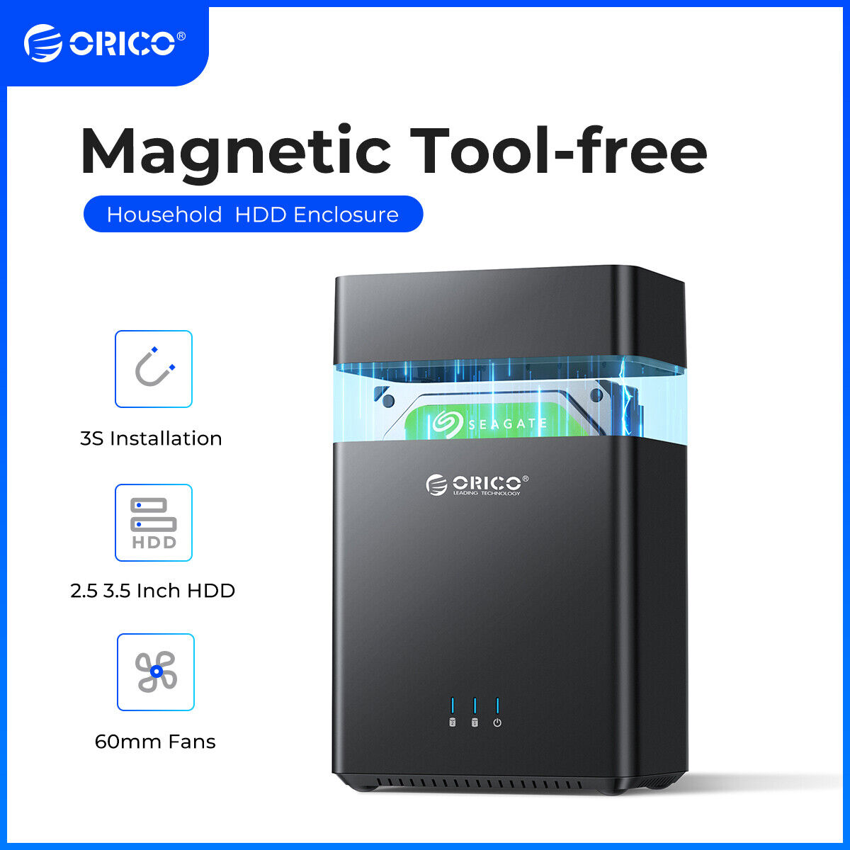 ORICO USB 3.0 External Hard Drive Enclosure for 3.5/2.5 Inch SATA Hard Drives/SSD Up to 20 TB, 3.5'' Tool-Free HDD Enclosure with 12V/2A Power Supply and UASP Acceleration (3588US3)