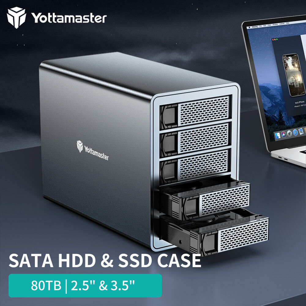 Yottamaster 5 Bay RAID Hard Drive Enclosure Type B 2.5" 3.5" SATA HDD SSDs 80TB