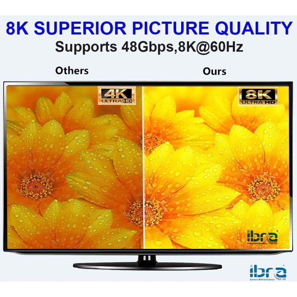 IBRA 2.1 HDMI Cable 8K Ultra High-Speed 48Gbps Lead | Supports 8K@60HZ, 4K@120HZ, 4320p, Compatible with Fire TV, 3D Support, Ethernet Function, 8K