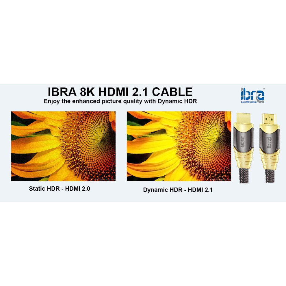 IBRA Luxury 2.1 HDMI Cable 8K Ultra High-Speed 48Gbps Lead | Supports 8K@60HZ, 4K@120HZ, 4320p, Compatible with Fire TV, 3D Support, Ethernet
