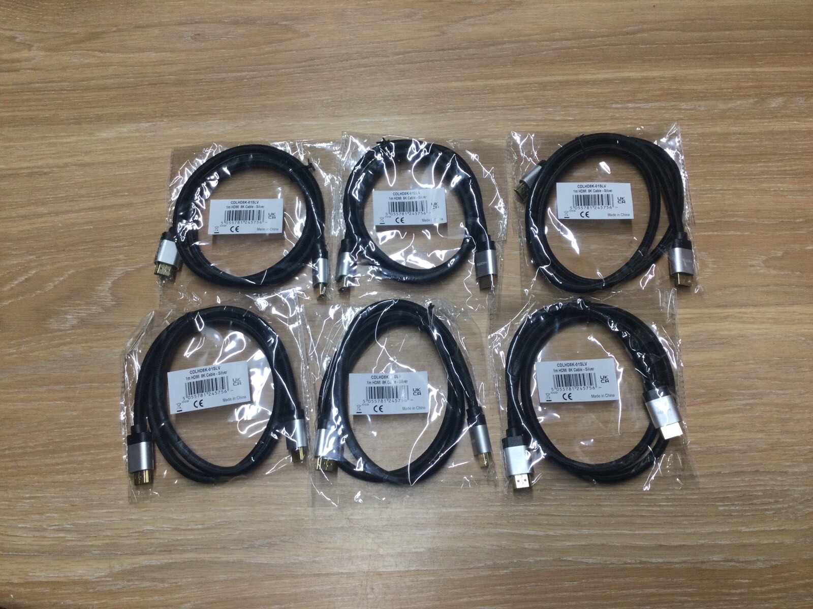 6 x 1m Premium High Speed 8K HDMI 2.1 Lead with Ethernet, Silver Aluminium Hoods