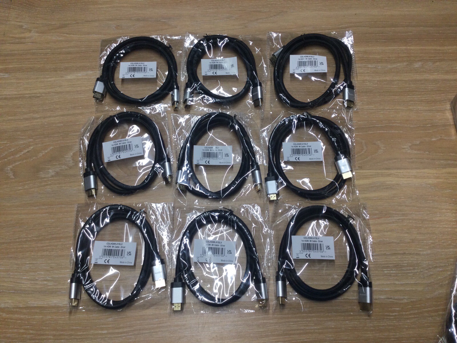9 x 1m Premium High Speed 8K HDMI 2.1 Lead with Ethernet, Silver Aluminium Hoods