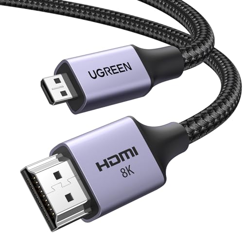 UGREEN Micro HDMI to HDMI 2.1 Cable 8K 4K@120/240Hz Standard Type D Lead eARC Dolby Atmos HDR Ultra High Speed HDCP Compatible with Raspberry Pi 5/4 Hero 7 Camera DSLR Portable Monitor Laptop PS5(1M)