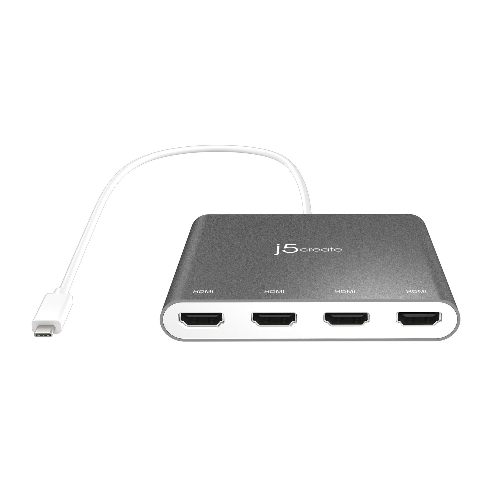 j5create USB-C to 4 Port HDMI Adapter Hub- Multi Monitor Splitter - Support 4 1080p 60Hz Displays - Compatible with Type-C MacBook and Windows Laptop (JCA366)