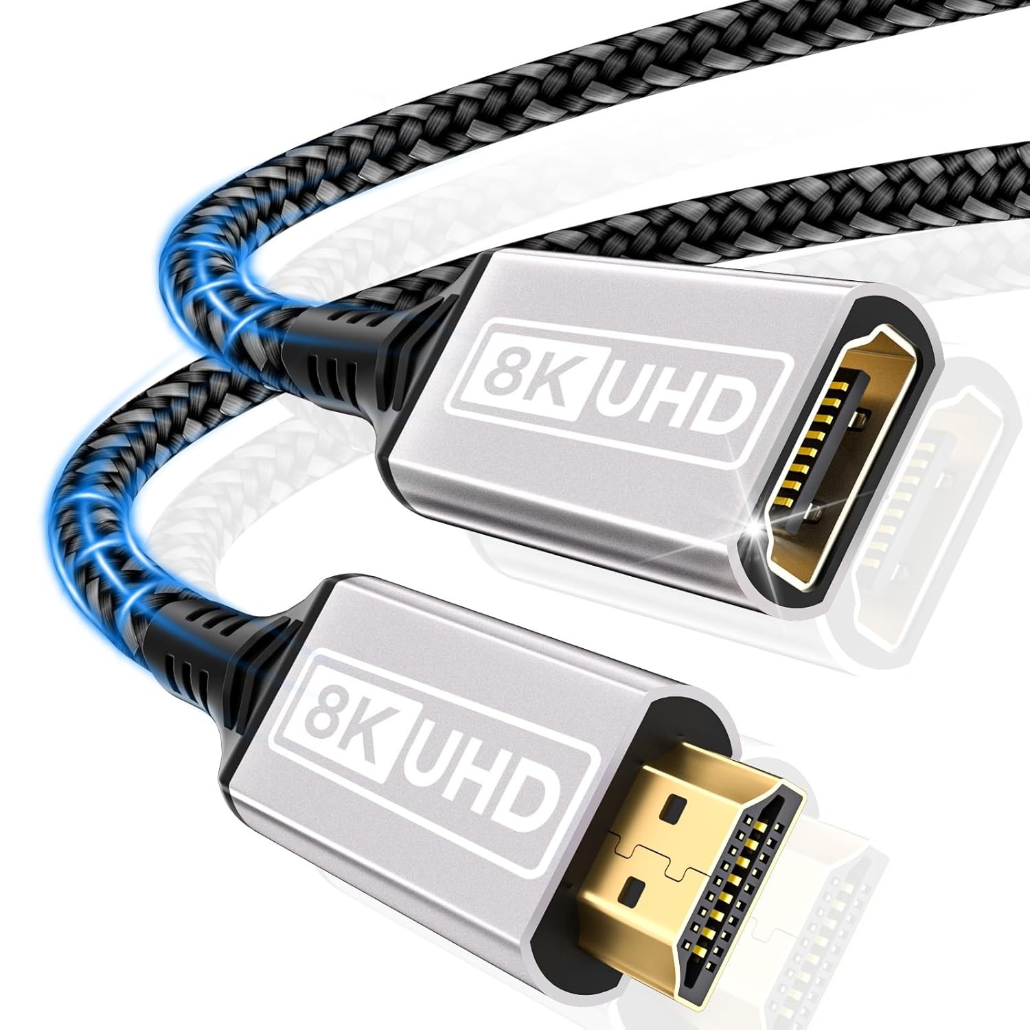 Twozoh 8K HDMI Extender Cable, Nylon Braided HDMI 2.1 Male to Female Extender Supports 8K@60Hz, 4K@120Hz, 48Gbps (1M)