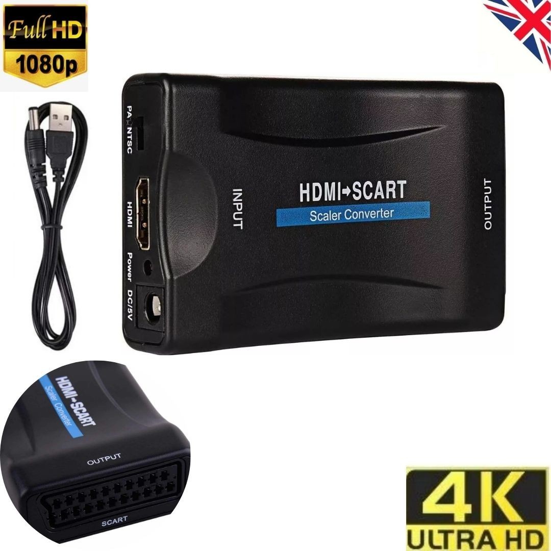 SCART to HDMI Converter Composite Scaler Audio Video Adapter with HDMI Cable UK