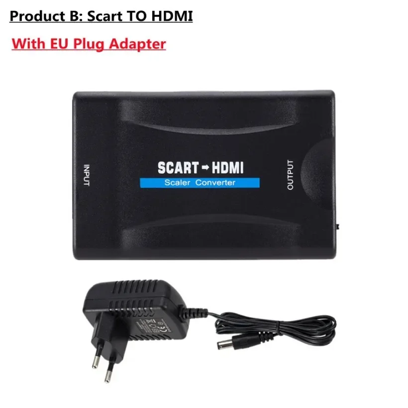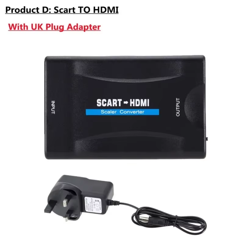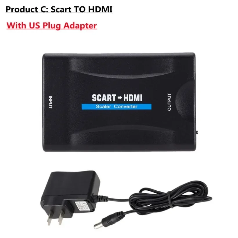 1080P SCART to HDMI Converter – Video Audio Upscale Adapter with DC Cable