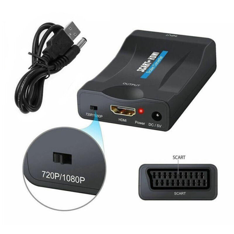 Scart to HDMI Converter Adapter Old Device to HD TV/Monitor Display USB Powered